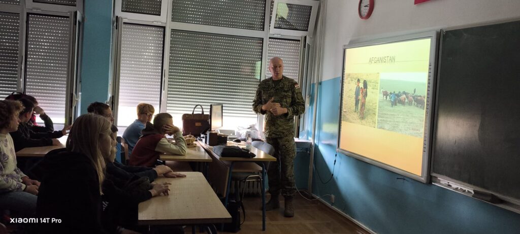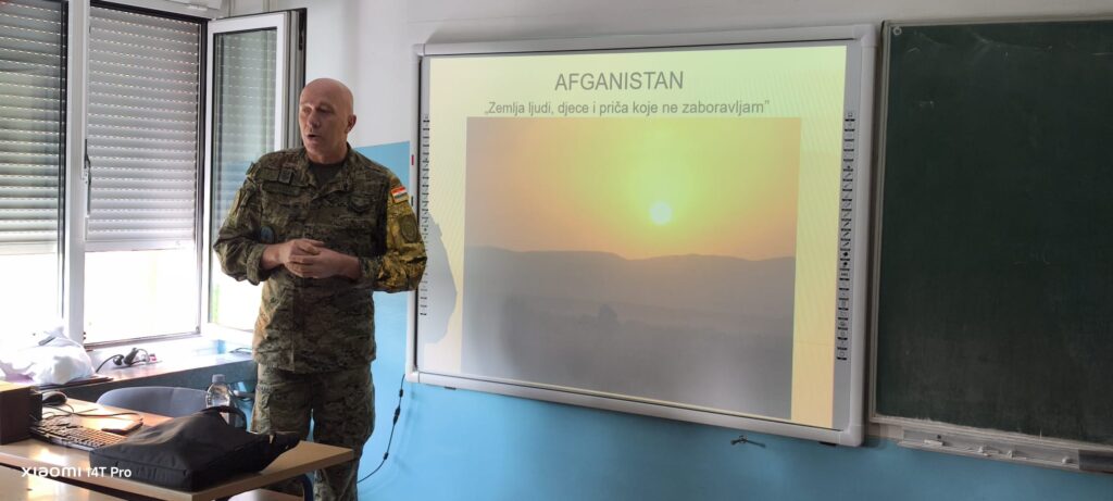 Kako bi se učenicima približio kontekst djela za cjelovito čitanje naslova Djevojčica iz Afganistana autorice Deborah Ellis, učenici 7. a i 7. c imali su priliku sudjelovati na zanimljivom i edukativnom predavanju „Afganistan – zemlja, ljudi, običaji”. Gost predavač bio je stožerni narednik Robert-Mike Jurkovac, koji je kroz osobna iskustva i bogato znanje učenicima približio ovu daleku zemlju.