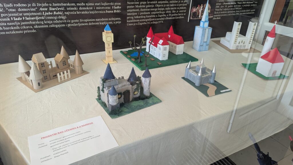 Nastali su maštoviti i raznoliki modeli – od dvoraca i tornjeva do modernih građevina – izrađeni kombiniranjem osnovnih geometrijskih oblika poput prizmi, valjaka i stožaca. Posebna pažnja posvećena je detaljima, stabilnosti konstrukcije i estetskom dojmu. Projekt je realiziran pod vodstvom učiteljice matematike Maje Plantaš, koja je učenike potaknula na istraživanje, stvaralaštvo i drugačiji pristup učenju matematike.