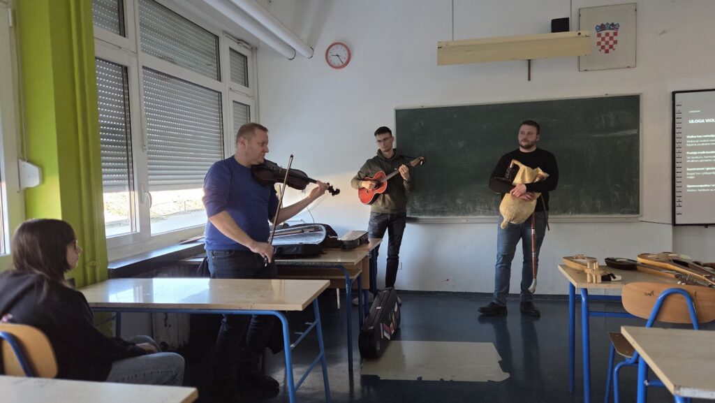 Gosti su učenicima demonstrirali način sviranja pojedinih instrumenata, objasnili razlike između tradicijskih i suvremenih glazbala te istaknuli važnost prenošenja znanja na mlađe generacije. Učenici su s velikim zanimanjem pratili izlaganje, postavljali pitanja te imali priliku fotografirati glazbala i iz prve ruke doživjeti njihov autentičan zvuk.