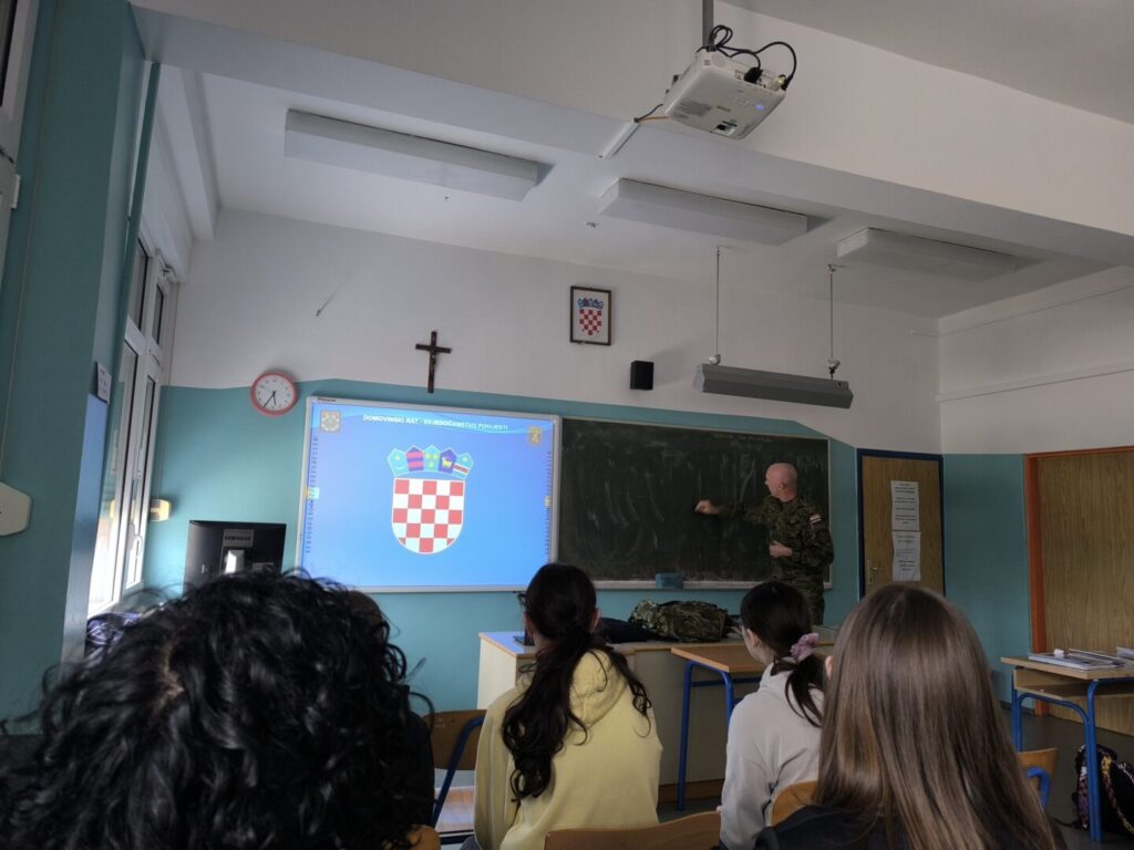 Tijekom 3 dana od 14.-16. travnja, stožerni narednik Robert Mike Jurkovac obuhvatio je predavanjem sve osme razrede naše škole. Učenici 8. razreda imali su priliku čuti više o Domovinskom ratu iz perspektive gdin. Jurkovca kao mladića od 16 godina pa sve do aktivnog sudjelovanja u vojnim operacijama.