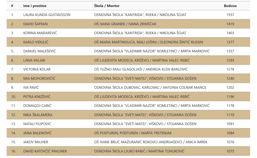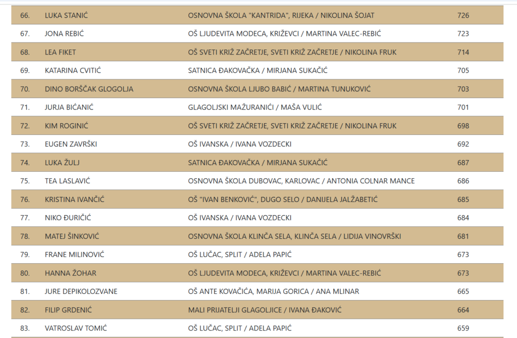 Čestitamo svim sudionicima na uloženom trudu i postignutom uspjehu!